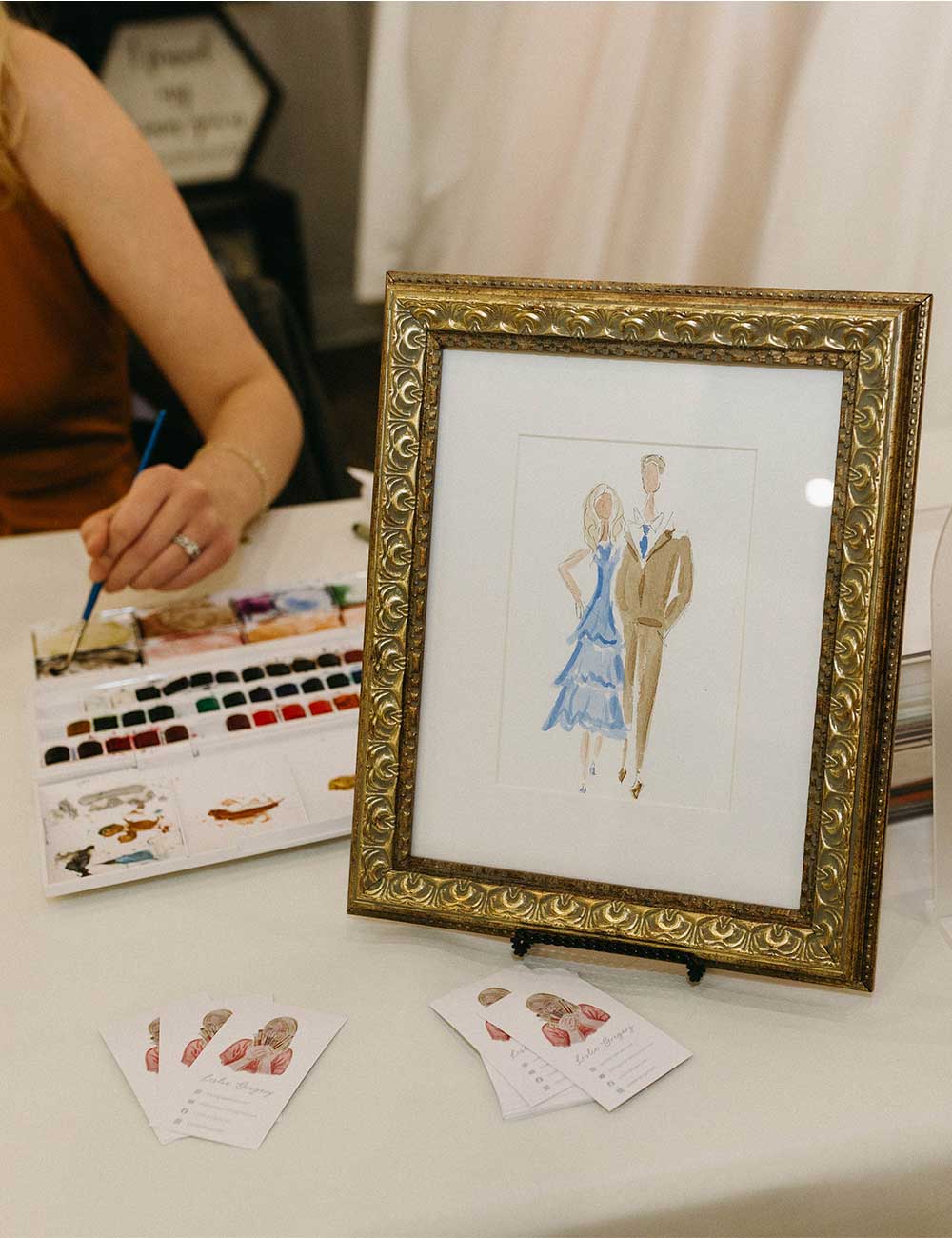 An unforgettable experience your guests will LOVE! Thank your guests at your wedding or event with a custom live watercolor portrait that they can take home with them.