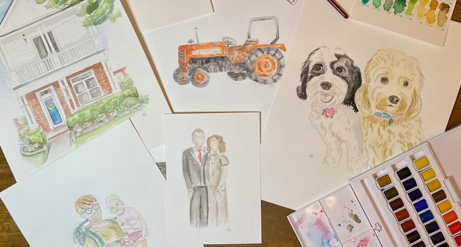 Local artist in Northwest Arkansas specializing in watercolor portraits and live painting for weddings and events.